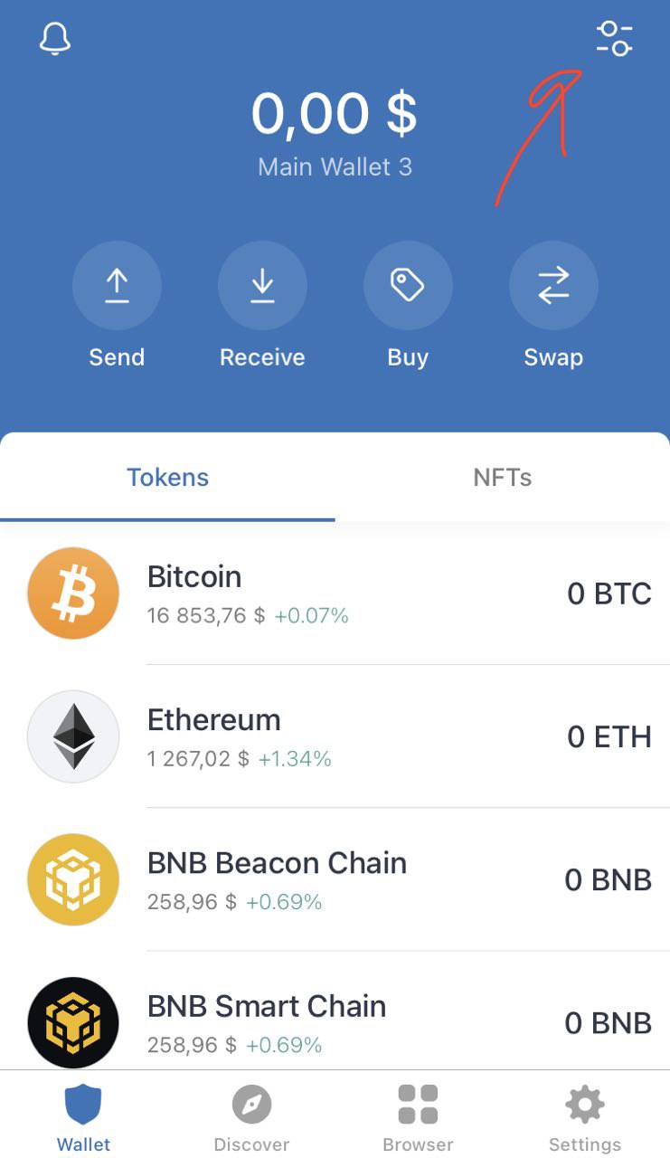 Нажмите на кнопку конфигурации токенов в правом верхнем углу: