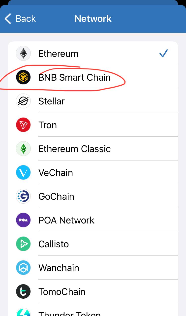 Выберите сеть BNB Smart Chain (если в списке нет сети - добавьте её)