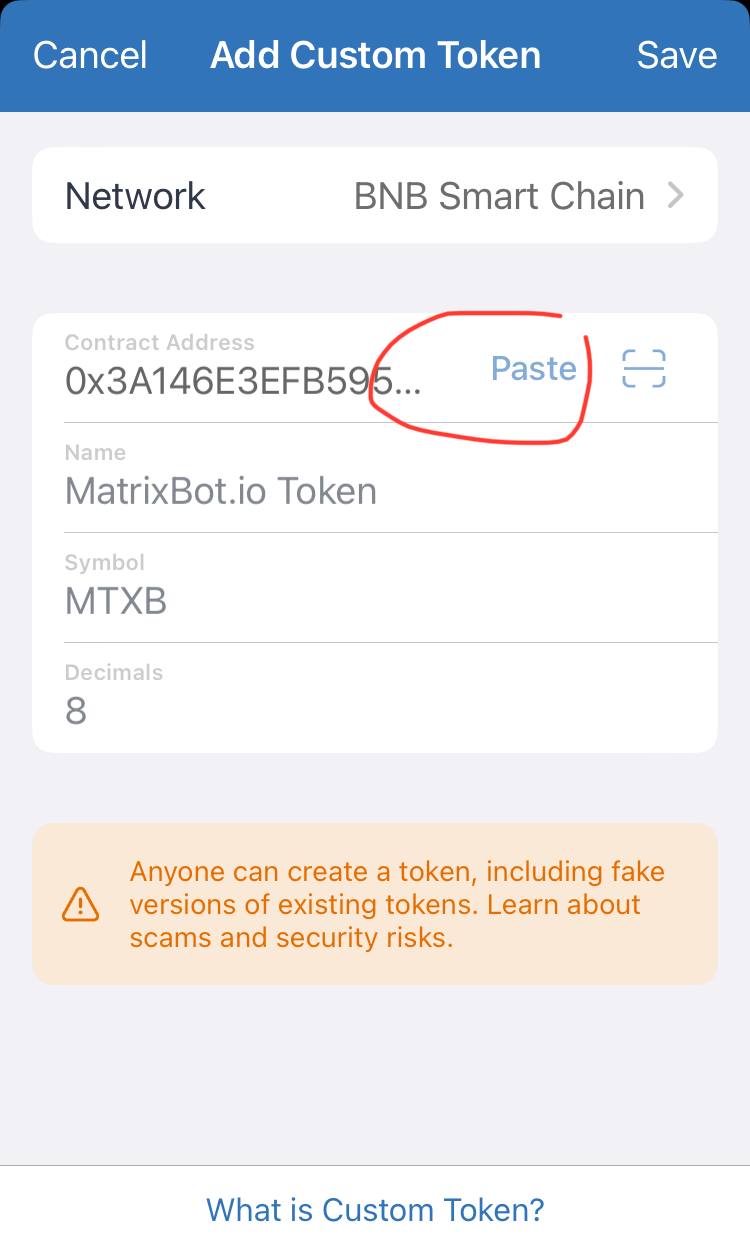 Вставьте адрес контракта токена MTXB: 0x3A146E3EFB59567366b0C94fFfa97273736Adbb1